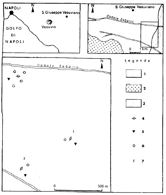 Dall’ analisi dei confronti tra i profili di velocità e le colonne stratigrafiche si può evidenziare che il primo sismostrato si individua in corrispondenza dei livelli più superficiali molto incoerenti, costituiti da suolo agrario e da lapilli pomicei e scoricei. Il secondo sismostrato corrisponde agli accumuli di colate fangose, mentre il primo netto gradini di velocità, individuato nei siti “G” ed “I” alla profondità di circa 6 metri, si registra in corrispondenza degli accumuli di depositi cineritici prodotti da flussi piroclastici. Nel caso del sito “F”, il gradino di velocità è registrato alla profondità di circa 4 metri, in corrispondenza del passaggio degli accumuli di colate di fango ad un deposito cineritico da caduta. Per lo stesso sito, alla profondità di 16 metri si individua un altro gradino di velocità in corrispondenza del passaggio tra accumuli di colate fangose ed accumuli di flusso piroclastico. Nel caso specifico del sito “I”, infine, si evidenzia un netto cambio di velocità alla profondità di circa 10 metri, passando da 400 m/s a 700 m/s, in corrispondenza dagli accumuli di flussi piroclastici al deposito cineritico da caduta. Tale passaggio litologico è stato riconosciuto anche nel sito “G”, mediamente alla stessa profondità; ma in questo caso non è stato registrato lo stesso gradino neivalori di Vs.