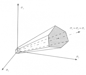 Se si rappresentano nello spazio tridimensionale le tensioni principali, la superficie di snervamento è rappresentata da un cilindro parallelo all’asse idrostatico