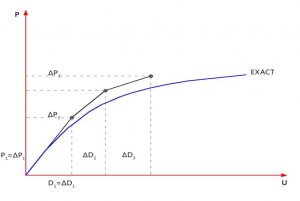 Con entrambi i metodi di risoluzione, il carico viene incrementato in diversi step e la soluzione si ottiene attraverso una serie di linearizzazioni.