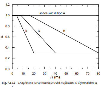 Il valore del coefficiente α può essere ricavato a partire dall’altezza complessiva H della paratia e dalla categoria di sottosuolo mediante il diagramma di Fig. 7.11.2