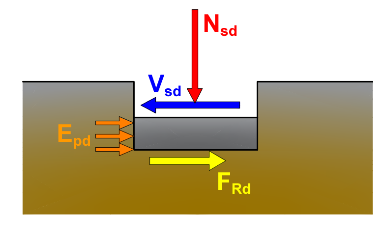 La resistenza laterale di calcolo Epd derivante dalla spinta del terreno sulla faccia laterale del plinto, può essere tenuta in conto nel casodi contatto diretto fondazione-terreno in scavi a sezione obbligata o di contatto diretto fondazione calcestruzzo o fondazione-acciaio in scavi sostenute da paratie o palancole.