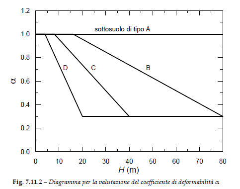 Il valore del coefficiente α può essere ricavato a partire dall’altezza complessiva H della paratia e dalla categoria di sottosuolo mediante il diagramma seguente diagramma.