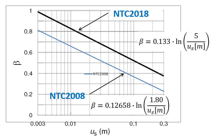 Rispetto alle previgenti disposizioni normative, le NTC 2018 introducono una diversa funzione per il calcolo del coefficiente β.