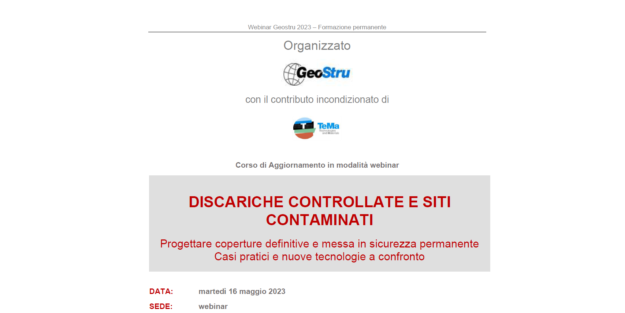 16 Aprile 2024 – Webinar gratuito: “Discariche e siti contaminati: Soluzioni Sostenibili per la Progettazione Ambientale”
