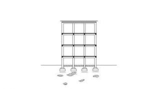 B. SLU a aceleiași structuri, având însă fundații izolate sub stâlpi, se produce pe seama unor tasari diferențiale excesive, produse, de pildț, prin prezența unei pungi de pământ foarte compresibil sub unul din stâlpi, neidentificată la investigarea terenului de fundare.